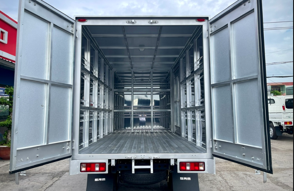 Kích thước thùng xe tải SRM S1 thùng kín lọt lòng 3.015–3.150 x 1.560 x 1.630 mm, thể tích lớn, Inox chống gỉ, cửa mở linh hoạt hai bên/hông, phù hợp vận chuyển hàng hóa nhỏ lẻ trong đô thị, kể cả thực phẩm, điện tử hay vật tư đóng gói.