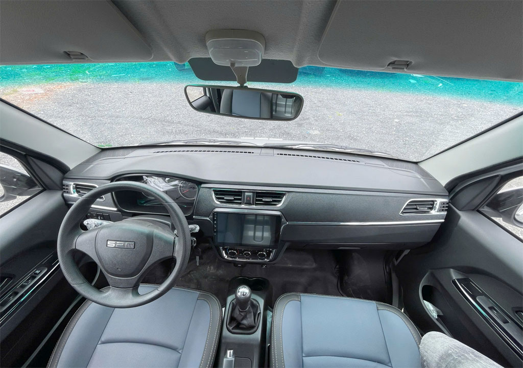 Nội thất bên trong xe tải SRM S1 thùng kín ở cabin rộng rãi như xe du lịch, ghế da cao cấp đa tư thế, không gian để chân 1.021 mm thoải mái. Trang bị điều hòa 2 chiều, kính chỉnh điện, màn hình Android 9 inch, vô lăng trợ lực EPS nhẹ nhàng, cùng nhiều hộc chứa đồ tiện nghi.