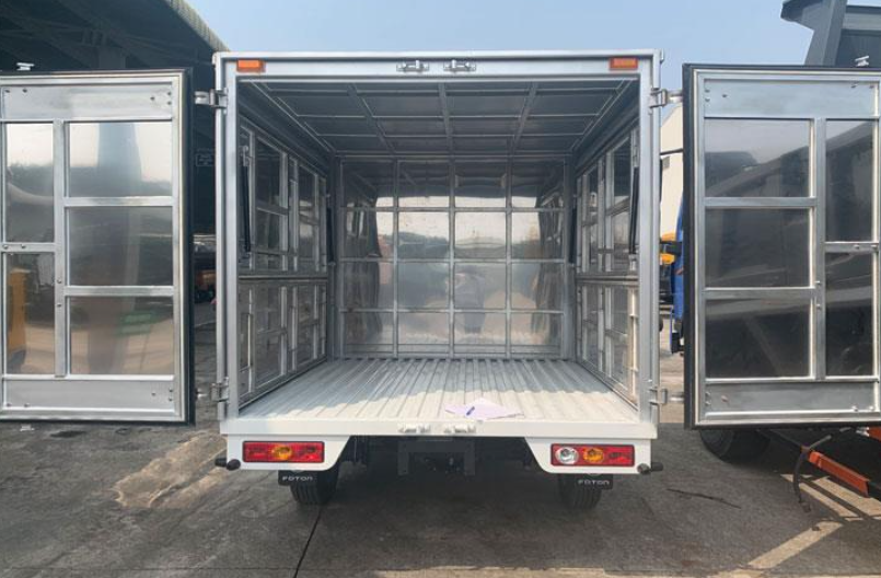 - Thùng kín inox dập sóng, 2 cửa sau + 1 cửa hông, bảo vệ hàng hóa tốt, chống mưa nắng bụi bẩn